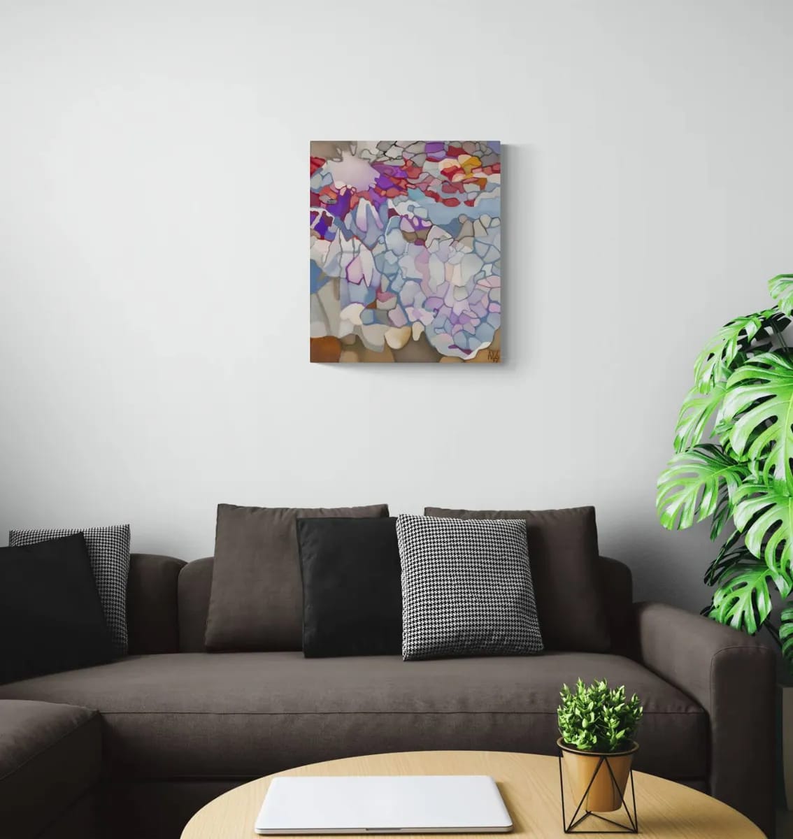 Painted with oil paint on a deep 3.5cm stretched canvas - the painting wraps around the sides of the canvas allowing the painting to be hung directly without framing.