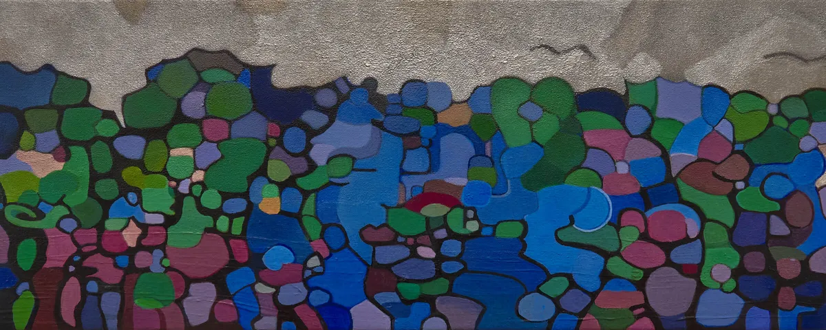Painted with acrylic and acrylic ink on a deep 3.5cm stretched canvas - the painting wraps around the sides of the canvas allowing the painting to be hung directly without framing.