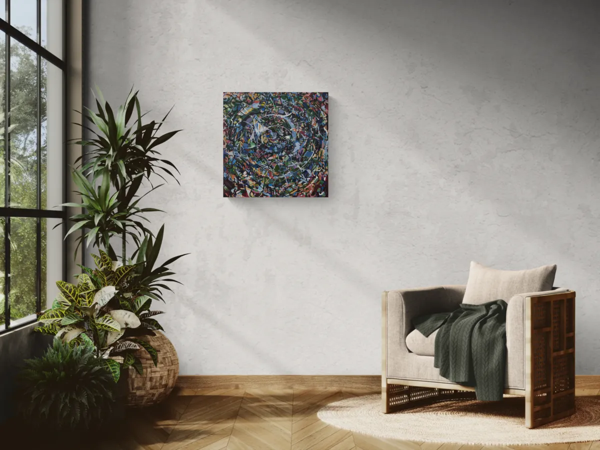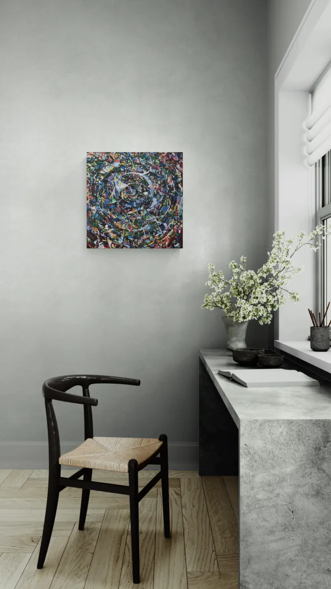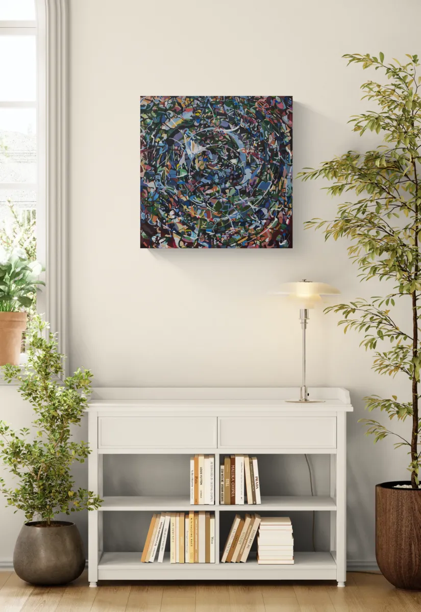 Painted with acrylic ink on a deep 3.5cm stretched canvas - the painting wraps around the sides of the canvas allowing the painting to be hung directly without framing.