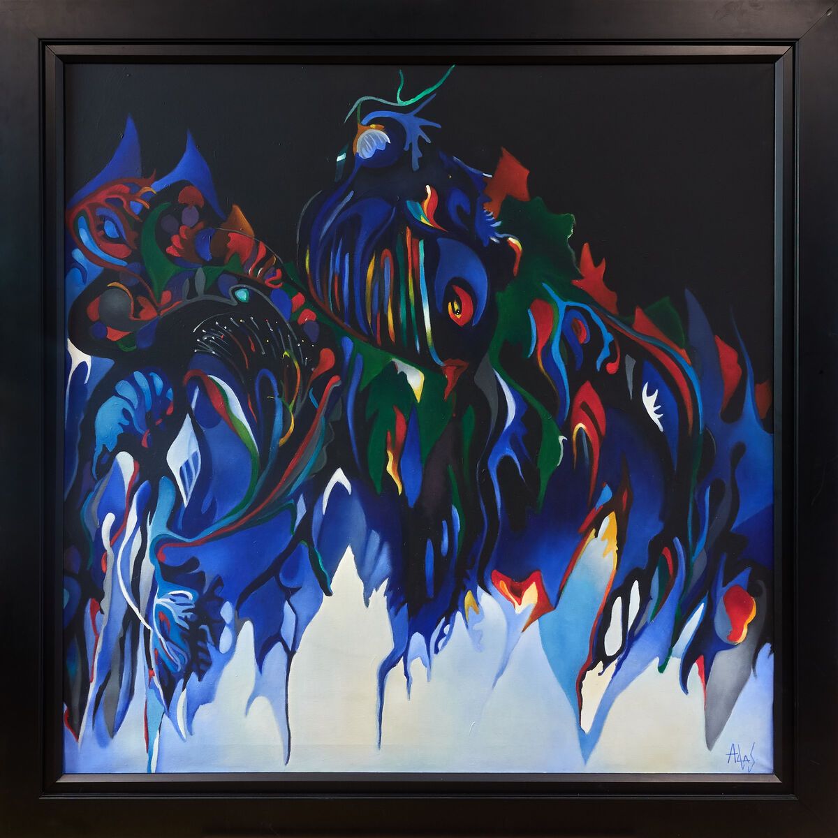 This beautiful framed painting is one of the few where the artist experimented with acrylic paints. There is a beautiful sense of movement with this abstract phoenix rising from what seems to be a cold blue flame.