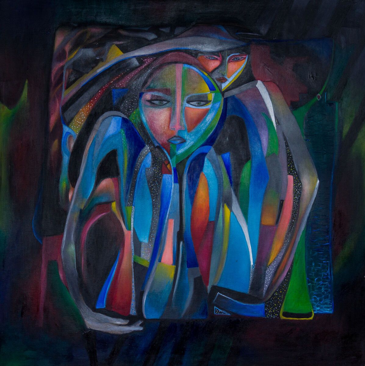 A richly detailed abstract figurative work invites us to come closer and join a nocturnal soiree. Painted with oil paint on a deep 3.5cm stretched canvas - the painting wraps around the sides of the canvas allowing the painting to be hung directly without framing.