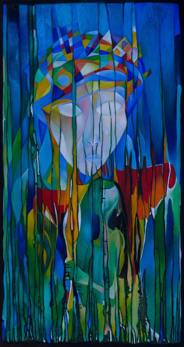 Here the artist revisits a concept from the previous year but this time with a substantially larger canvas. One has the sense of looking through a keyhole into the ‘other side’ where a very different scene is presented. Painted with oil paint on a deep 3.5cm stretched canvas - the painting wraps around the sides of the canvas allowing the painting to be hung directly without framing.