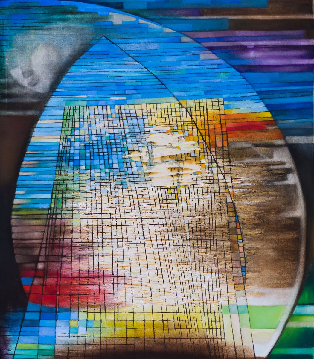 Multiple layers overlap and interact here in an abstract work that resides in a private collection in Cambodia. Painted with oil paint on a deep 3.5cm stretched canvas - the painting wraps around the sides of the canvas allowing the painting to be hung directly without framing.