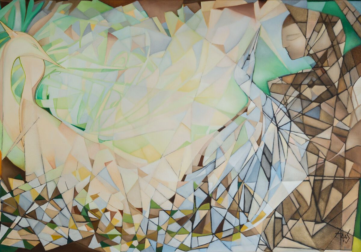 It may sound strange, but it seems that somehow the artist has taken an array of angular shapes and come out of it with something that manages to feel fluid and smooth. Whilst this painting was created in 2015 in Poland, we can’t help but feel that there is an echo of influence from Adrianna’s time in Cambodia. Exotic birds and an unusual landscape intertwine. Painted with oil paint on a deep 3.5cm stretched canvas - the painting wraps around the sides of the canvas allowing the painting to be hung directly without framing.