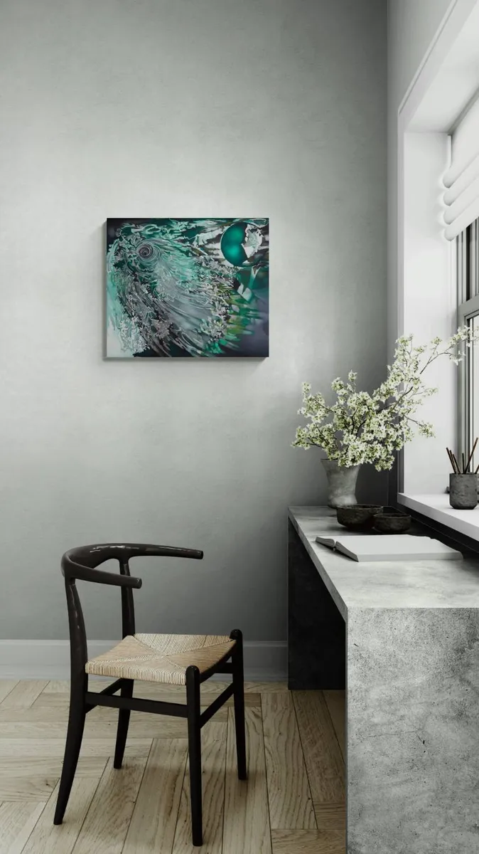 Commissioned by Cosmic Winnetou, this work is one of a series of three created for three separate albums released in 2018. This work was created for the album “Formic Syntax” by the artist “Ebauche”. Adrianna immersed herself in each album whilst painting the work, and viewing the work ideally should be accompanied by the music itself. Painted with oil paint on a deep 3.5cm stretched canvas - the painting wraps around the sides of the canvas allowing the painting to be hung directly without framing.