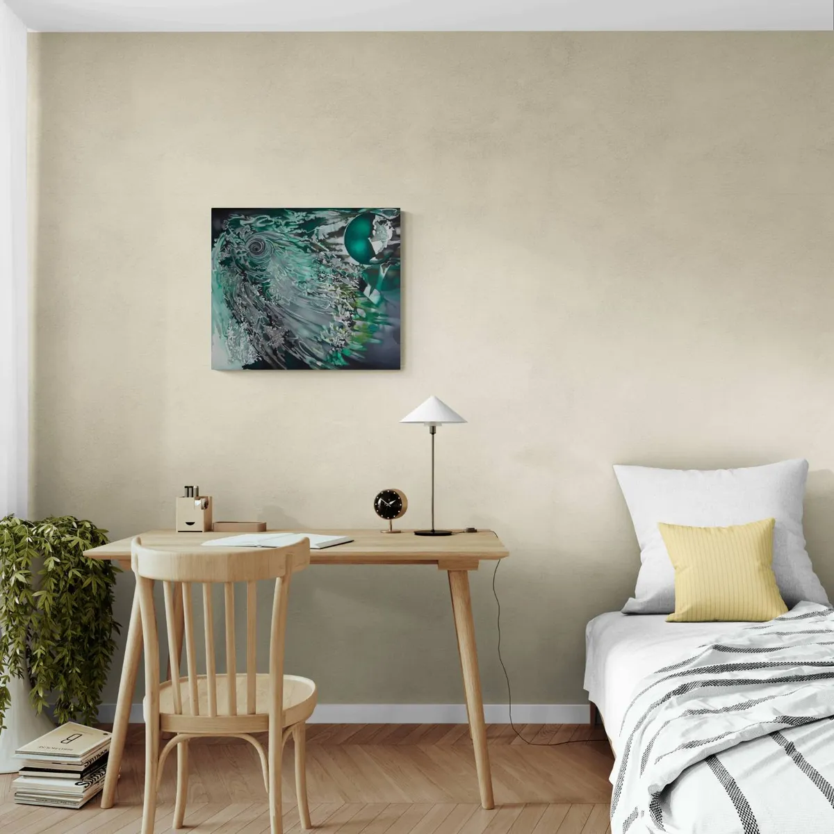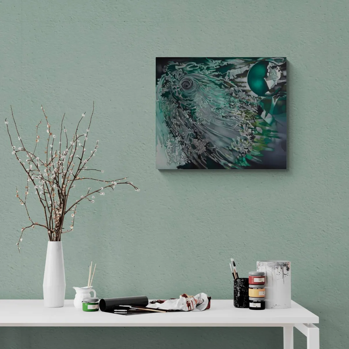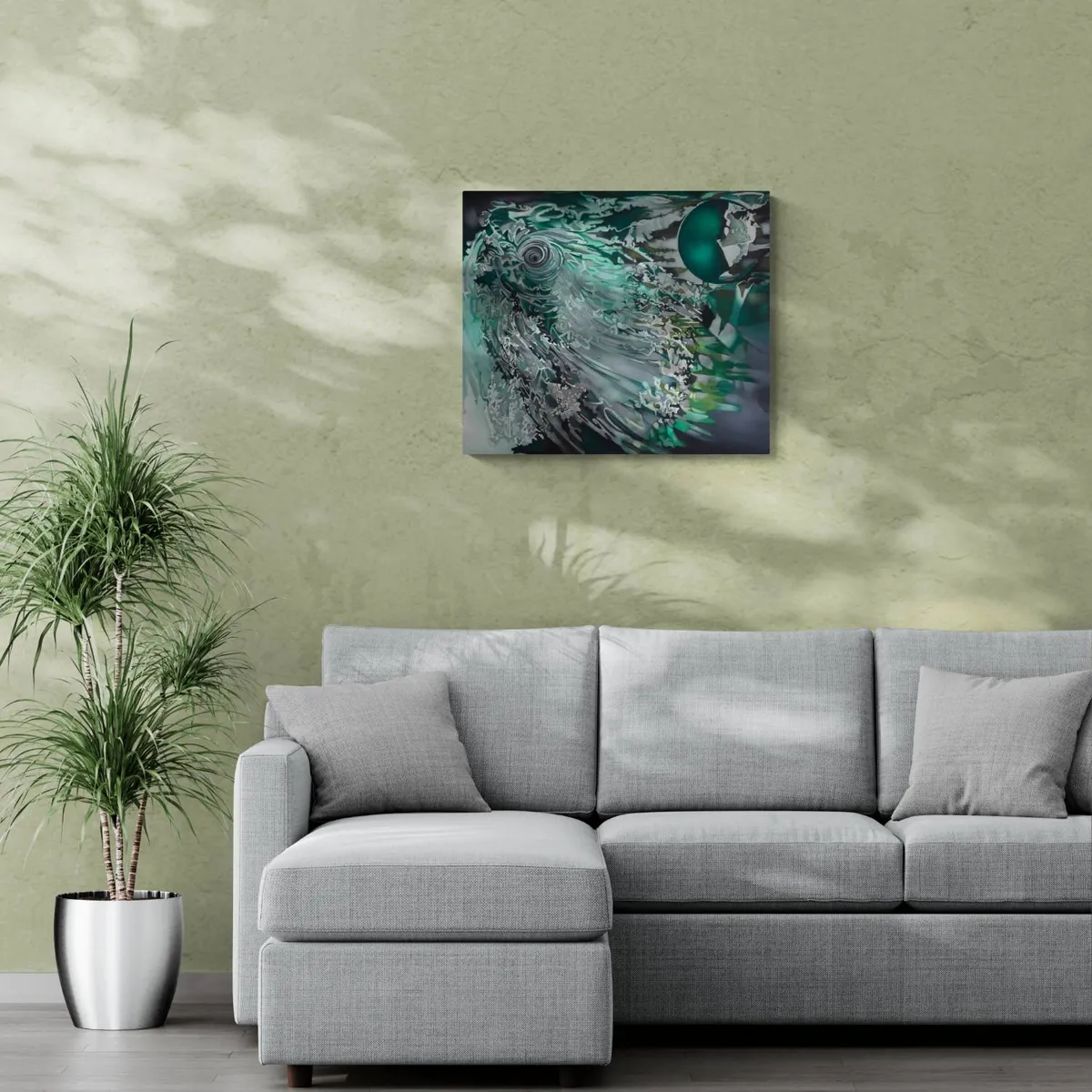 Commissioned by Cosmic Winnetou, this work is one of a series of three created for three separate albums released in 2018. This work was created for the album “The Gnome’s Pond” by the artist “Navel”. Adrianna immersed herself in each album whilst painting the work, and viewing the work ideally should be accompanied by the music itself. Painted with oil paint on a deep 3.5cm stretched canvas - the painting wraps around the sides of the canvas allowing the painting to be hung directly without framing.