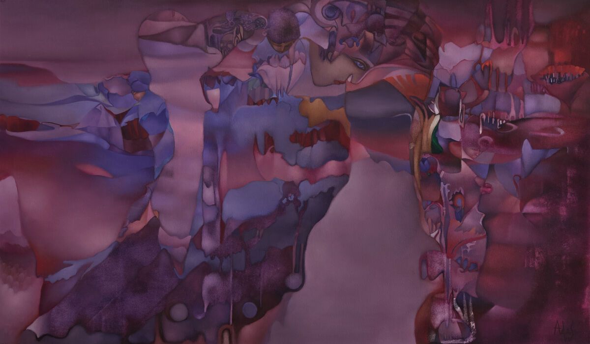 A relatively minimal departure, this work still manages to subtly incorporate multiple layers, interwoven and interacting. A figure meets our gaze eye to eye, and yet at the same time turns away from us, thoughts like an aura glimmer and flitter around, yielding a sense of what might be passing through the artists mind. Painted with oil paint on a deep 3.5cm stretched canvas - the painting wraps around the sides of the canvas allowing the painting to be hung directly without framing.