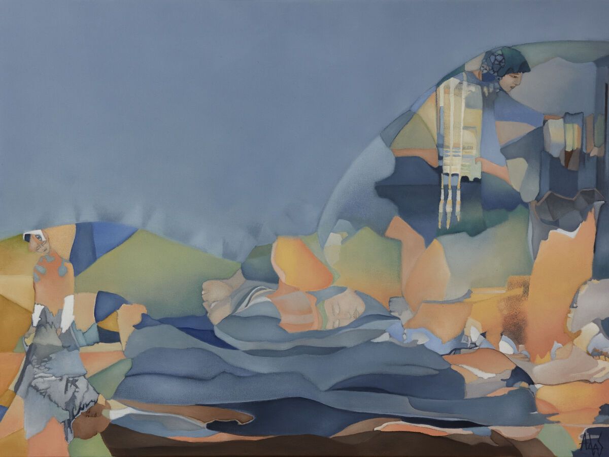 As is often the case with Adrianna’s work, this painting seems to slowly reveal itself with further study. What at first seemed disconnected resolves and links. A series of shapes becomes a contemplative face, thoughts overflowing, a before and after, an anticipation and and a restful reflection. Painted with oil paint on a deep 3.5cm stretched canvas - the painting wraps around the sides of the canvas allowing the painting to be hung directly without framing.
