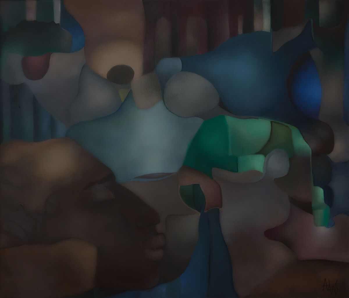 As is often the case with Adrianna’s work, this painting seems to slowly reveal itself with further study. What at first seemed disconnected resolves and links. A series of shapes becomes a contemplative face, thoughts overflowing, a before and after, an anticipation and and a restful reflection. Painted with oil paint on a deep 3.5cm stretched canvas - the painting wraps around the sides of the canvas allowing the painting to be hung directly without framing.