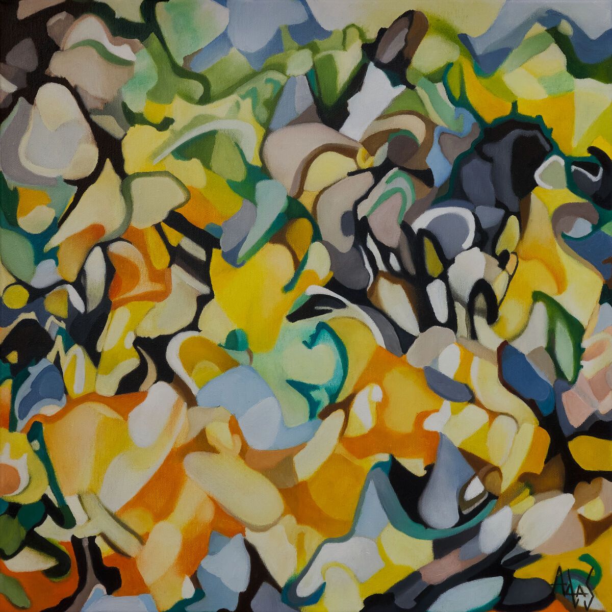 This stunning 120cm tall canvas is Adrianna at her best. Abstract figures intermingle and overlap, a play of faces exuding calm contemplation, all in a space that appears to fold in on itself, whilst revealing glimpses of a rich and varied place beyond. Painted with oil paint on a deep 3.5cm stretched canvas - the painting wraps around the sides of the canvas allowing the painting to be hung directly without framing.