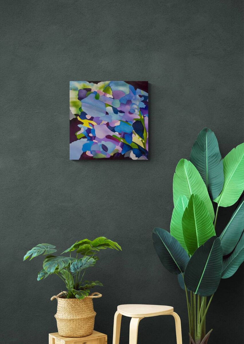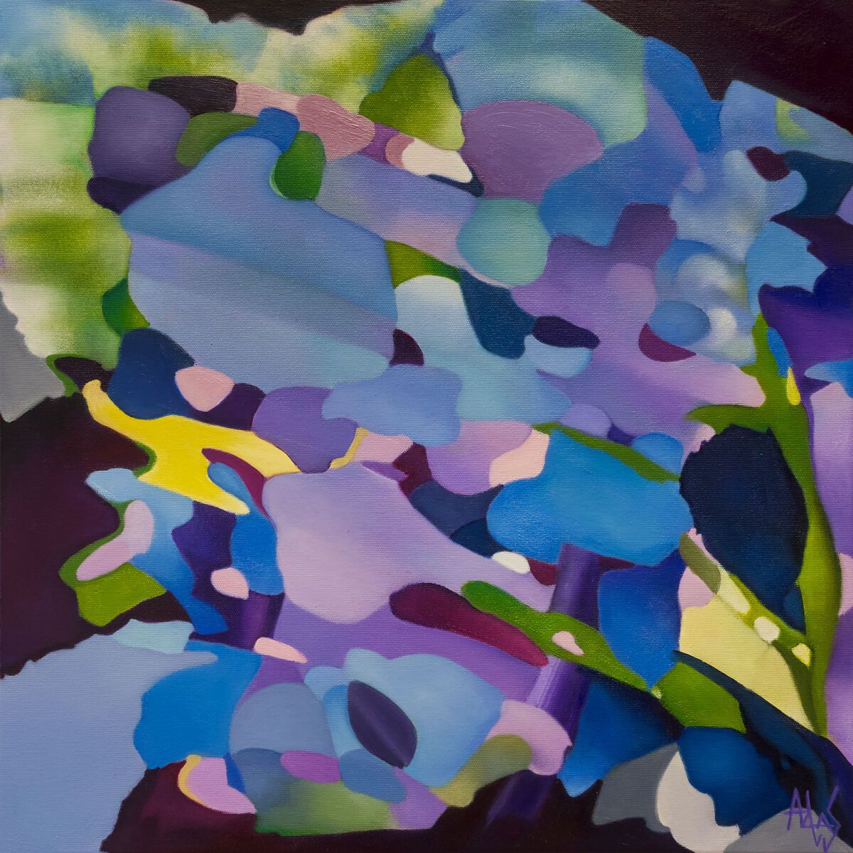 This smaller square canvas contains a veritable plethora of delights, a playful experiment with colours which feels as though it is revealing fragments or glimpses of a journey, surrounded by nature - perhaps an investigation of the often fractured nature of memory. Painted with oil paint on a deep 3.5cm stretched canvas - the painting wraps around the sides of the canvas allowing the painting to be hung directly without framing.