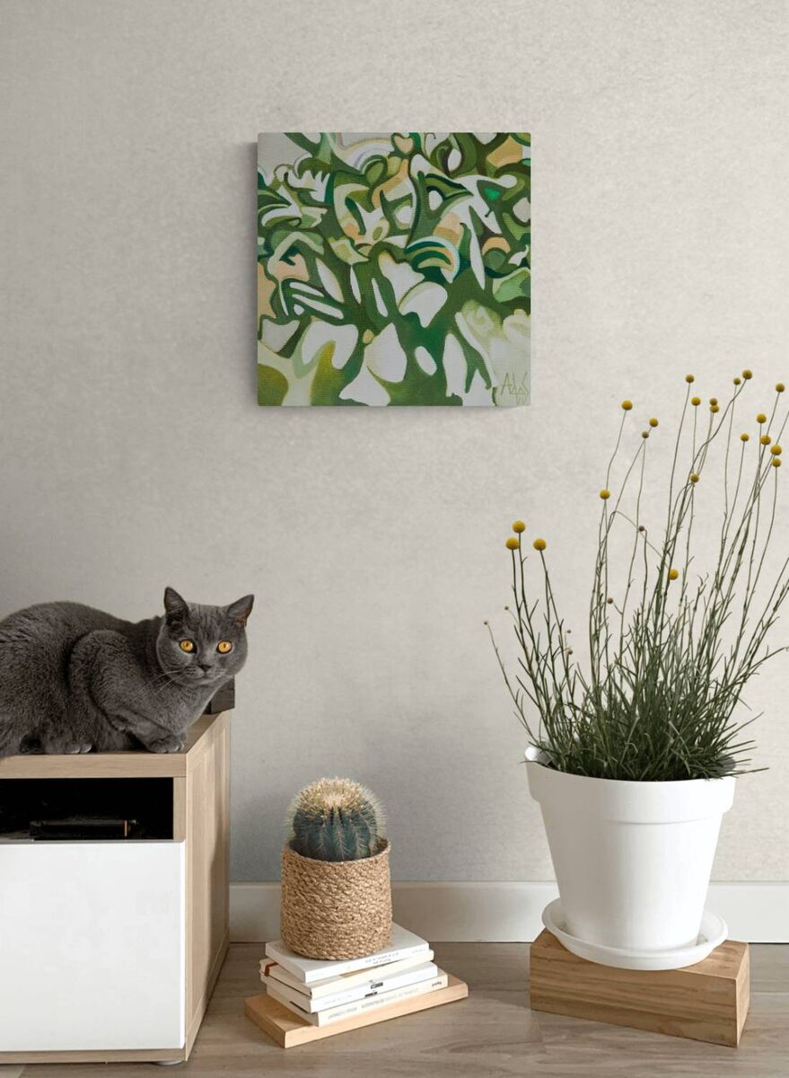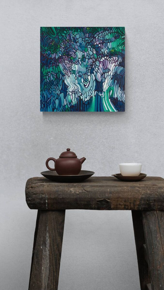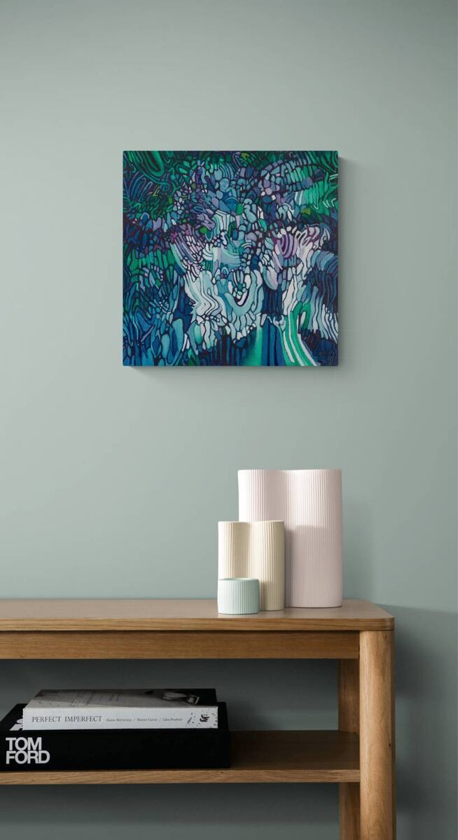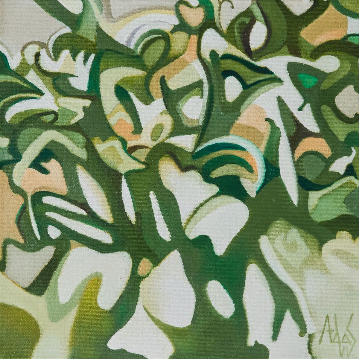 On one hand here we can sense the close up view of a fragment of the natural world, the intricacies and interconnectedness of life. And yet in another interpretation we can zoom out and find ourselves viewing a larger environment, a forest full of complex relationships and dependencies. Painted with oil paint on a deep 3.5cm stretched canvas - the painting wraps around the sides of the canvas allowing the painting to be hung directly without framing.
