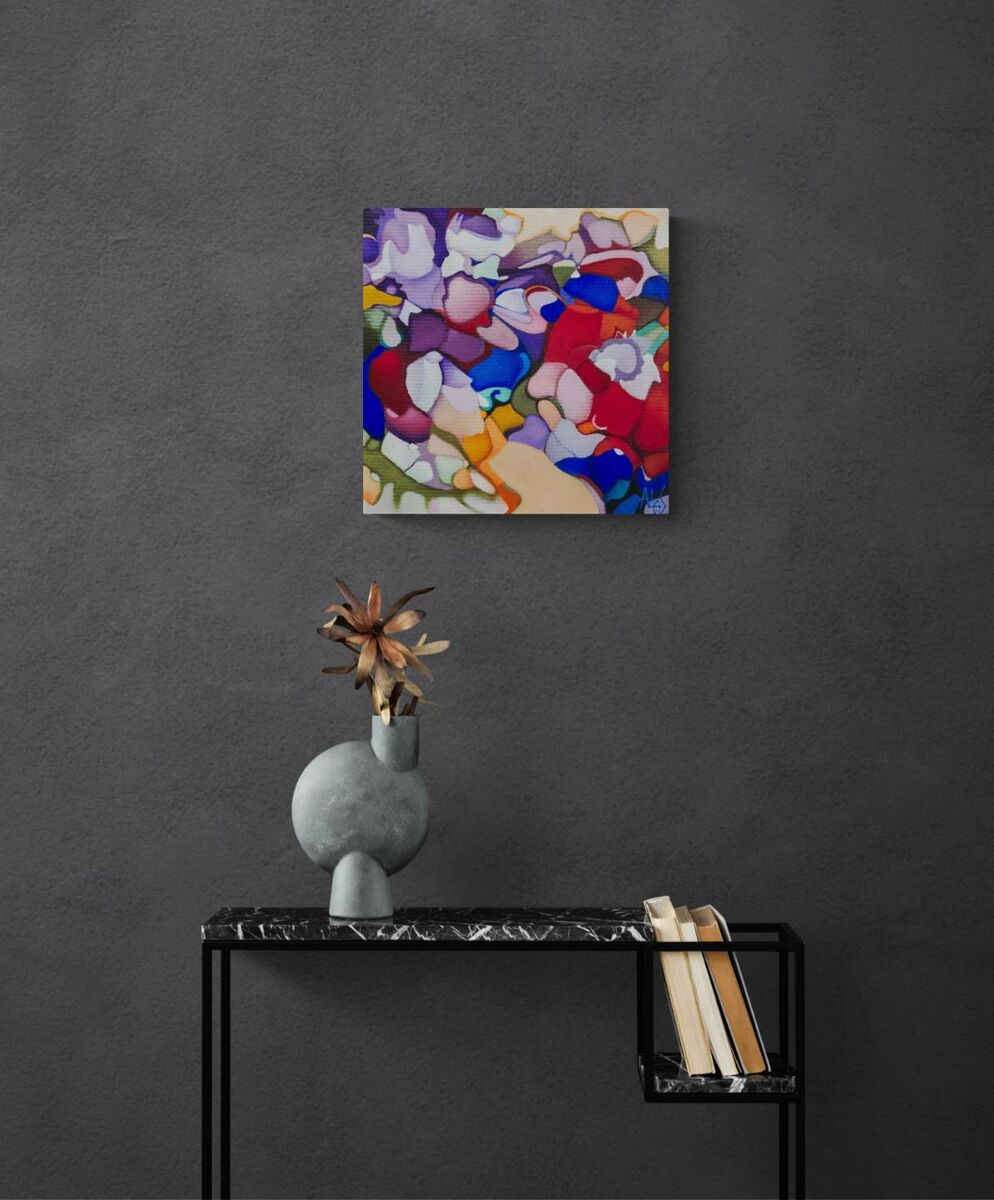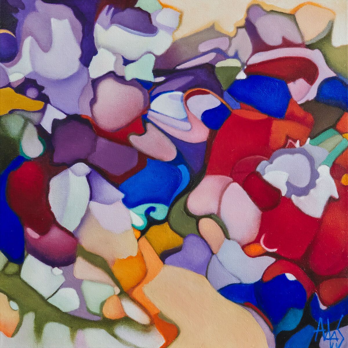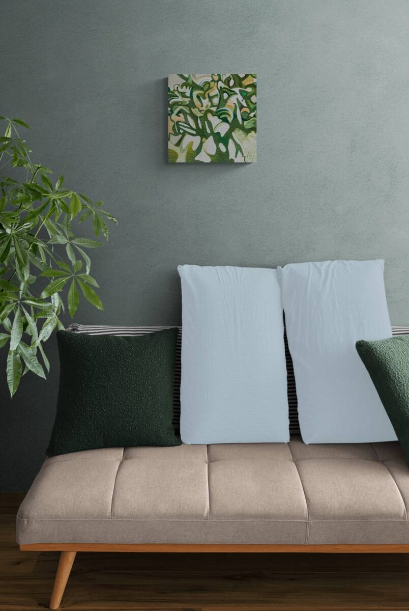 On one hand here we can sense the close up view of a fragment of the natural world, the intricacies and interconnectedness of life. And yet in another interpretation we can zoom out and find ourselves viewing a larger environment, a forest full of complex relationships and dependencies. Painted with oil paint on a deep 3.5cm stretched canvas - the painting wraps around the sides of the canvas allowing the painting to be hung directly without framing.