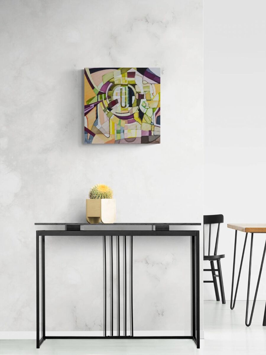 This fascinating abstraction draws the viewer in with stacked shapes and hints of motion. Sharing a similar style to last year's "Time Machine", this work feels somewhat more mature in its complexity. Painted with oil paint on a deep 3.5cm stretched canvas - the painting wraps around the sides of the canvas allowing the painting to be hung directly without framing.