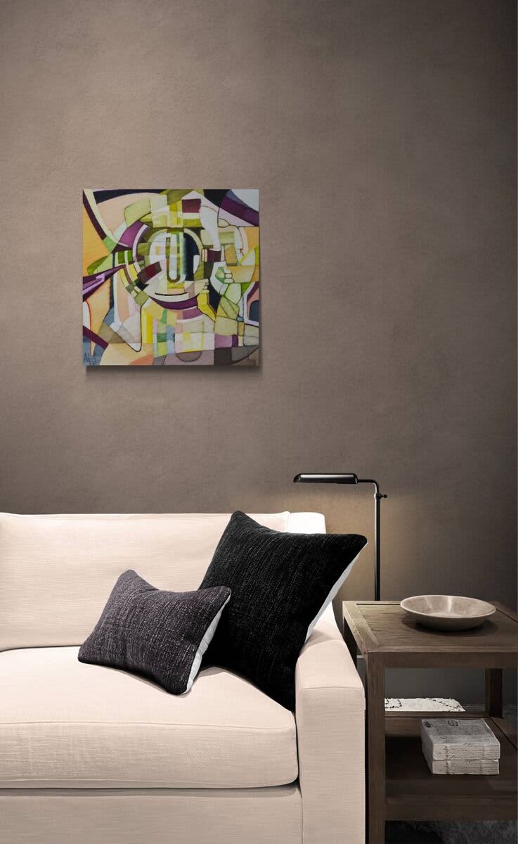 This fascinating abstraction draws the viewer in with stacked shapes and hints of motion. Sharing a similar style to last year's "Time Machine", this work feels somewhat more mature in its complexity. Painted with oil paint on a deep 3.5cm stretched canvas - the painting wraps around the sides of the canvas allowing the painting to be hung directly without framing.